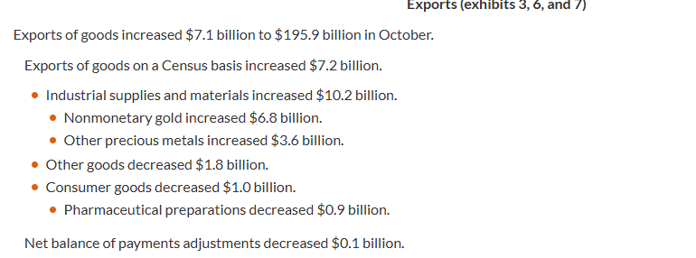 US exports of precious metals do not represent an improvement in US trade competitiveness and economic growth. Rather, these exports of precious metals are moving out of the US at very elevated prices for investment purposes.