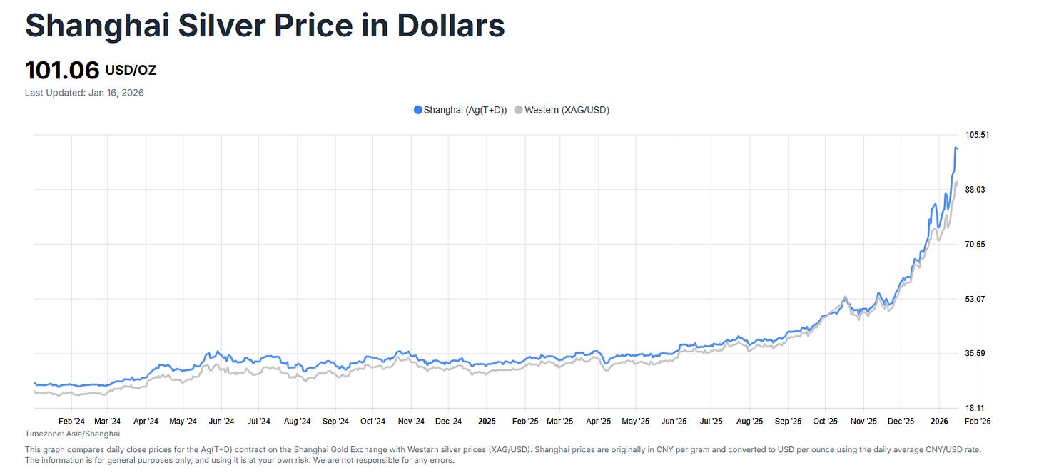 It also is understandable that other precious metals have generally flowed out of the US in Q4 because prices are higher overseas than domestically. The chart below compares silver prices in China with those in Europe/US and shows metal prices in China to be much higher.