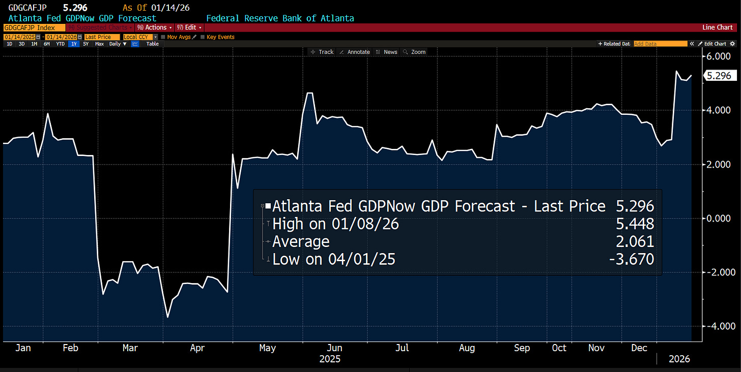 Since early January, Atlanta Fed GDPNow data have shifted up significantly and point towards Q4 US GDP growth (due out in late February) clocking in above 5%.